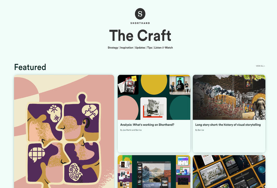 At Shorthand, I pivoted the blog from an SEO warehouse to a full sub-brand of beautifully written and designed pieces. As part of this sub-brand, I also led our newsletter, which reached tens of thousands of customers and prospects.Read more about this project at Shorthand's The Craft