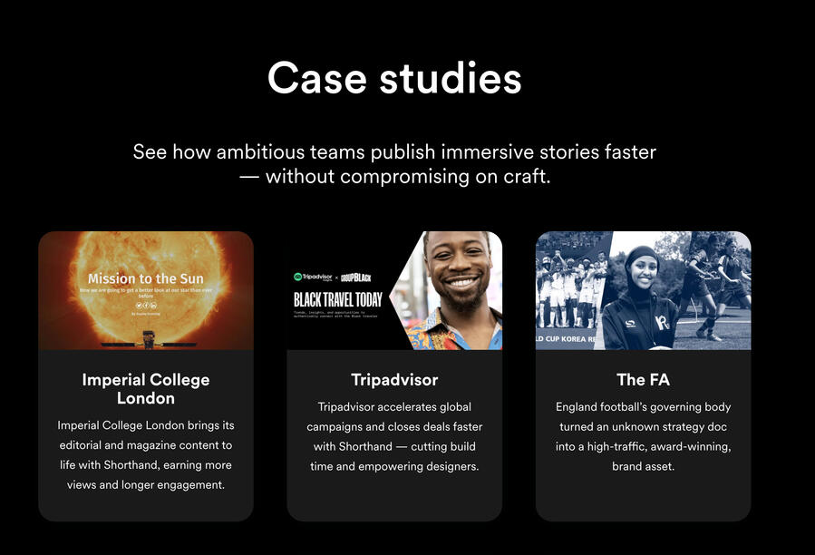 I produced a range of customer case studies while leading content at Shorthand. These stories crossed multiple industries, including journalism, government, and finance.See more at Shorthand.com