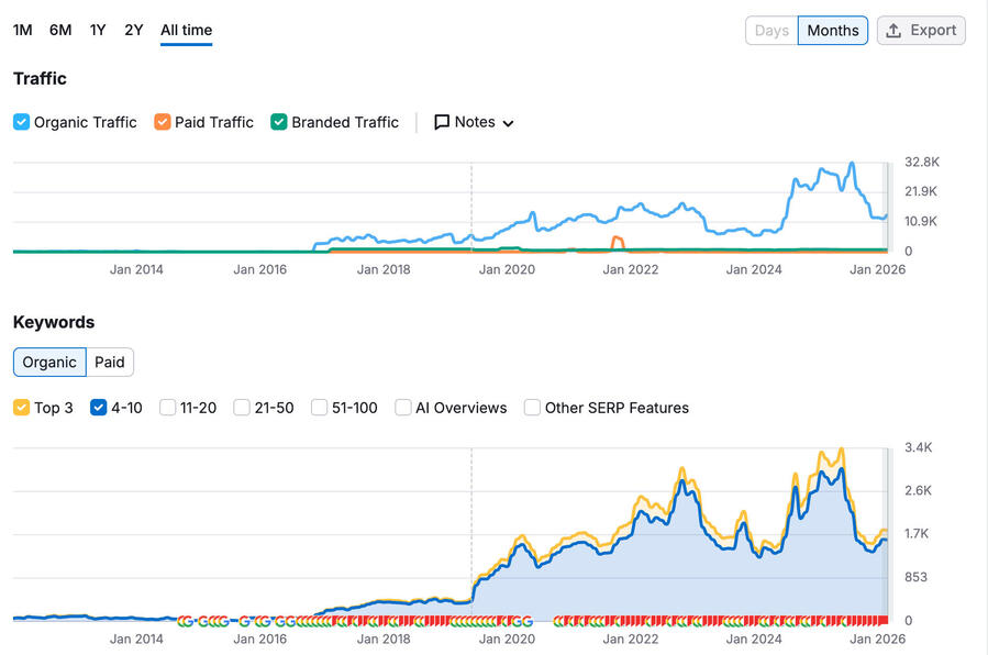 Starting in early 2020, I built out an engine to produce quality, on-brand content that ranked well in search.This process included hiring a team of freelance writers and designers, building out a suite of tools to assist, and regularly updating content to outrank our much larger rivals.